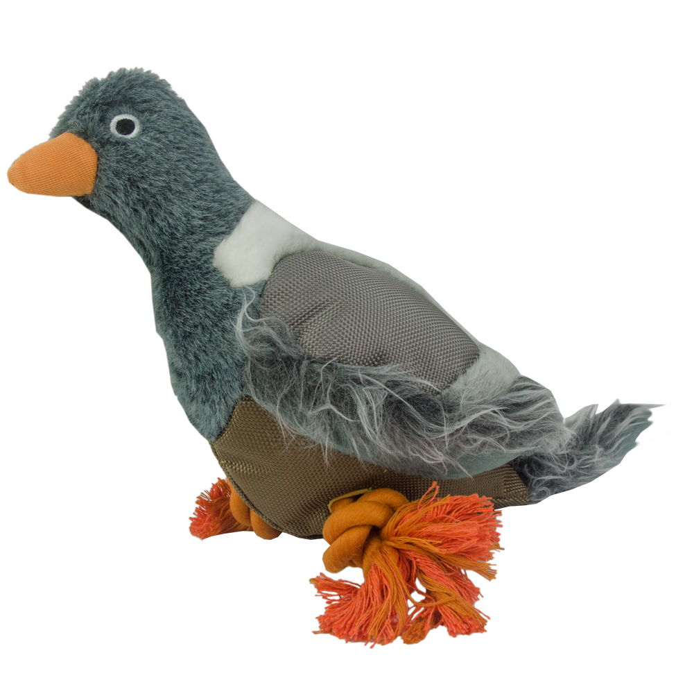 De Wild Life collection bestaat uit natuurgetrouwe pluche hondenspeeltjes. De vacht is gemaakt van zacht pluche en deze duif heeft een flostouw en een pieper.